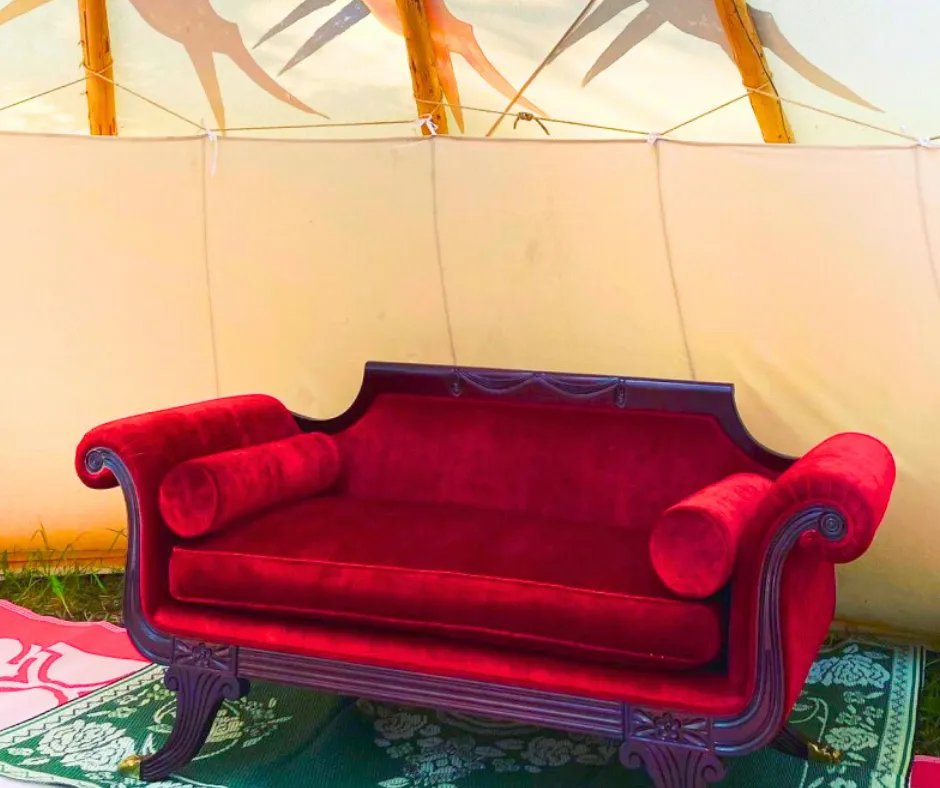 Private tipi with seating & Cowboy Cauldron